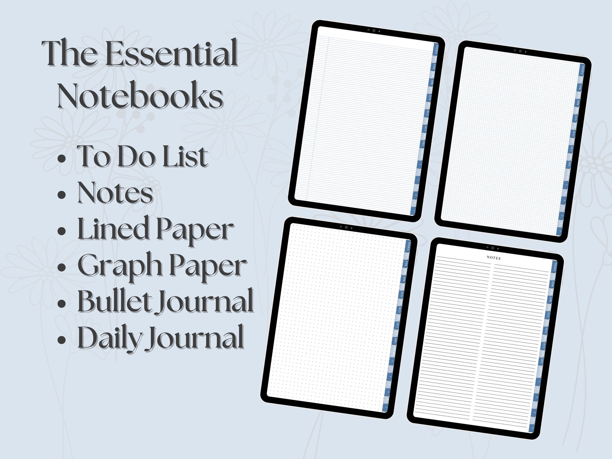 - Designed for tablets and digital planning apps like GoodNotes, Notability and other digital note taking apps