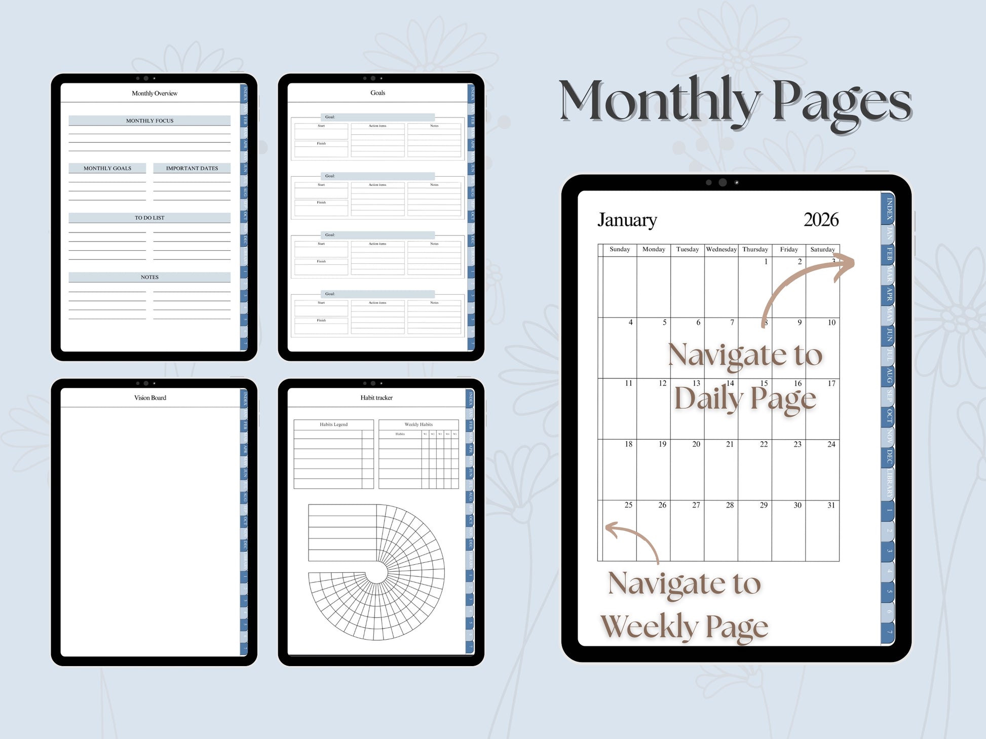 - Monthly Goals Tracker to keep your ambitions clear and achievable