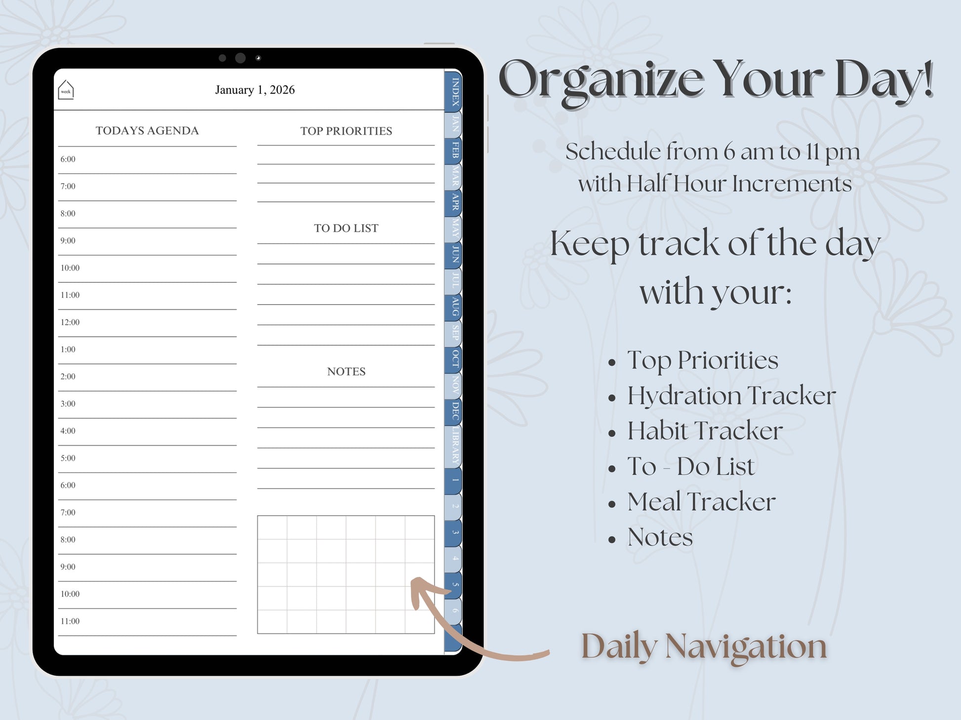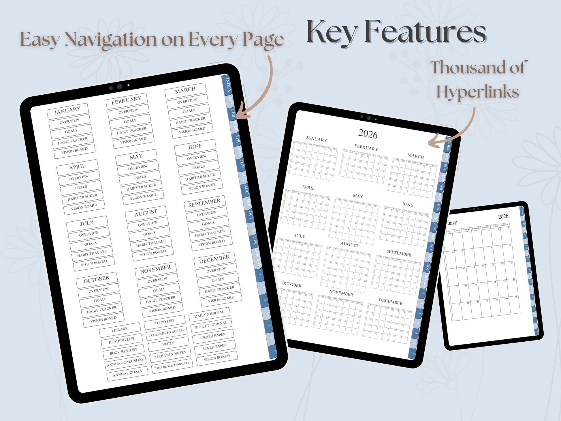 The Blue Skies 2026 Digital Planner is a beautifully designed, hyperlinked digital planner created to help you stay organized, focused and intentional every day. Made for iPad and digital planing apps like GoodNotes and Notability, it blends clean layouts, botanical charm, and powerful structure into one effortless planning system.