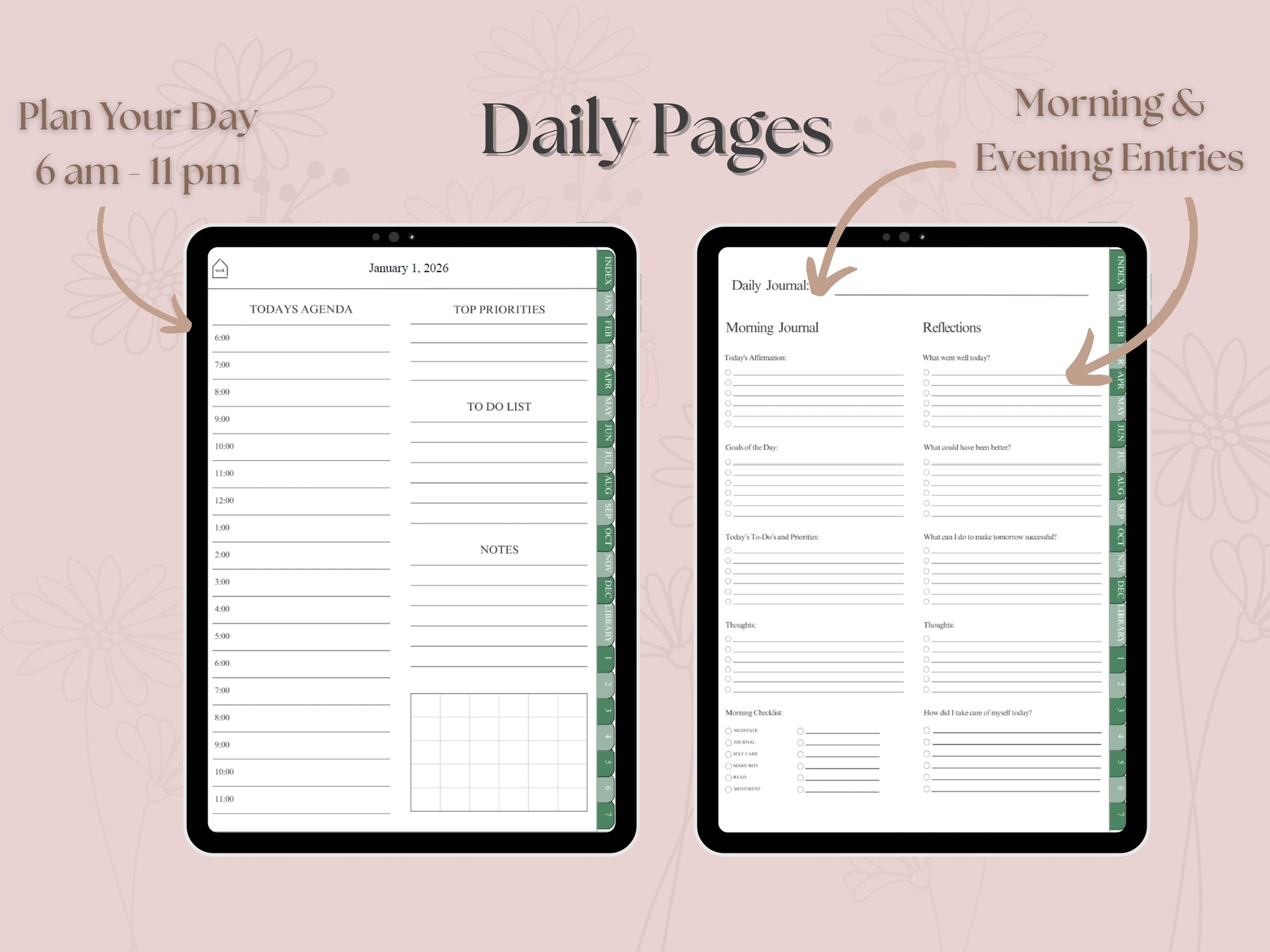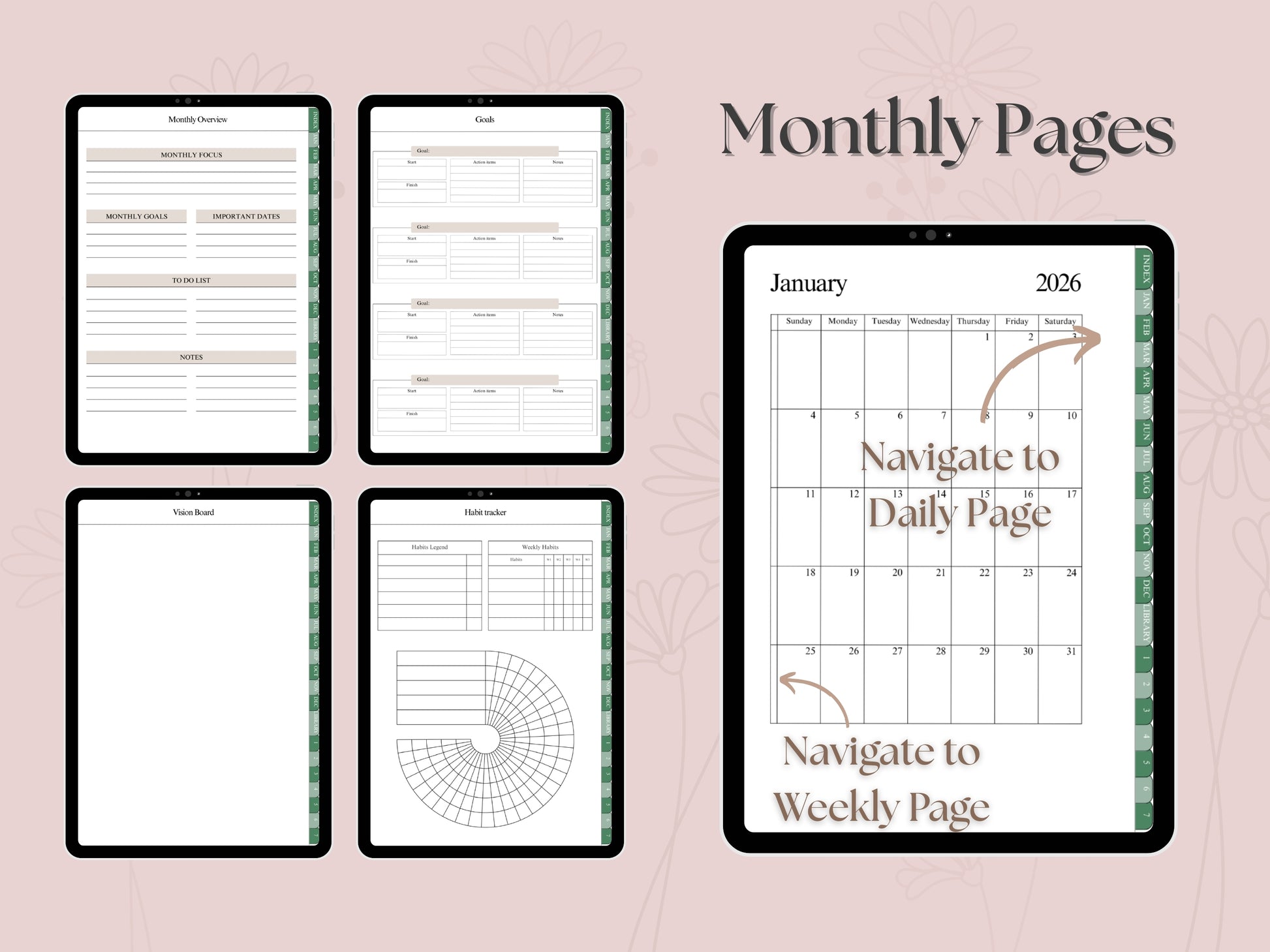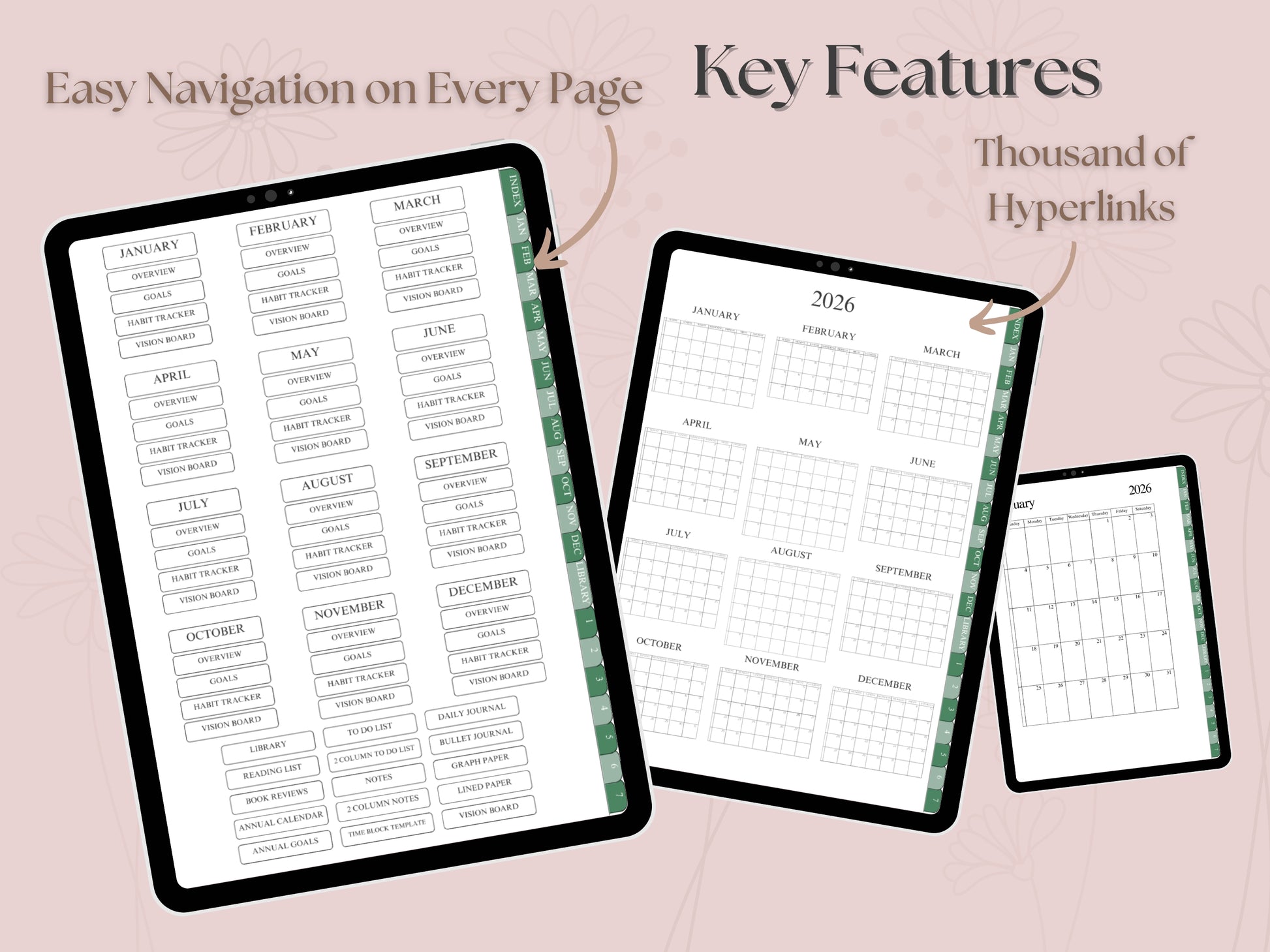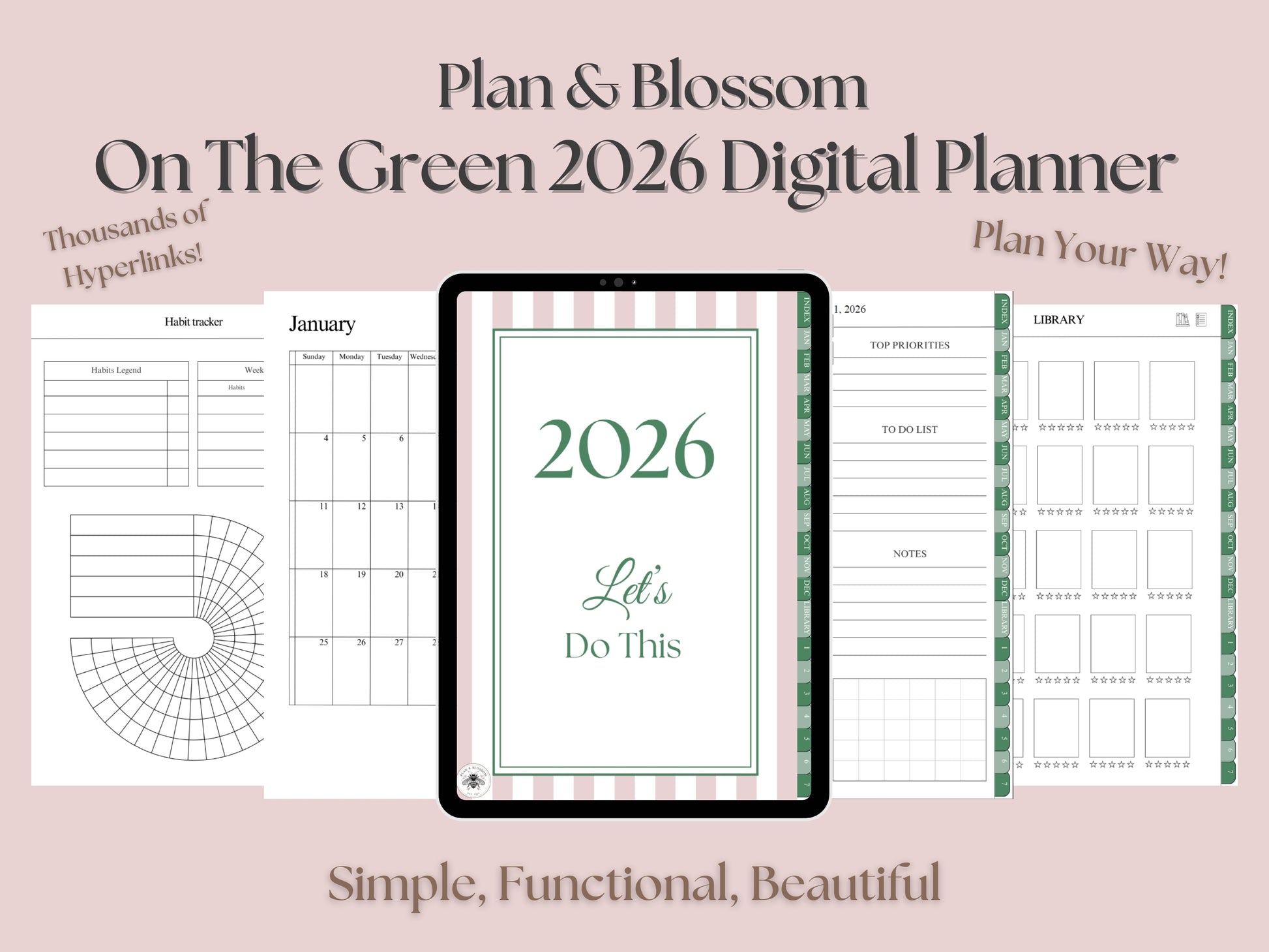 The On The Green 2026 Digital Planner is a beautifully designed, hyperlinked digital planner created to help you stay organized, focused and intentional every day. Made for iPad and digital planing apps like GoodNotes and Notability, it blends clean layouts, botanical charm, and powerful structure into one effortless planning system.