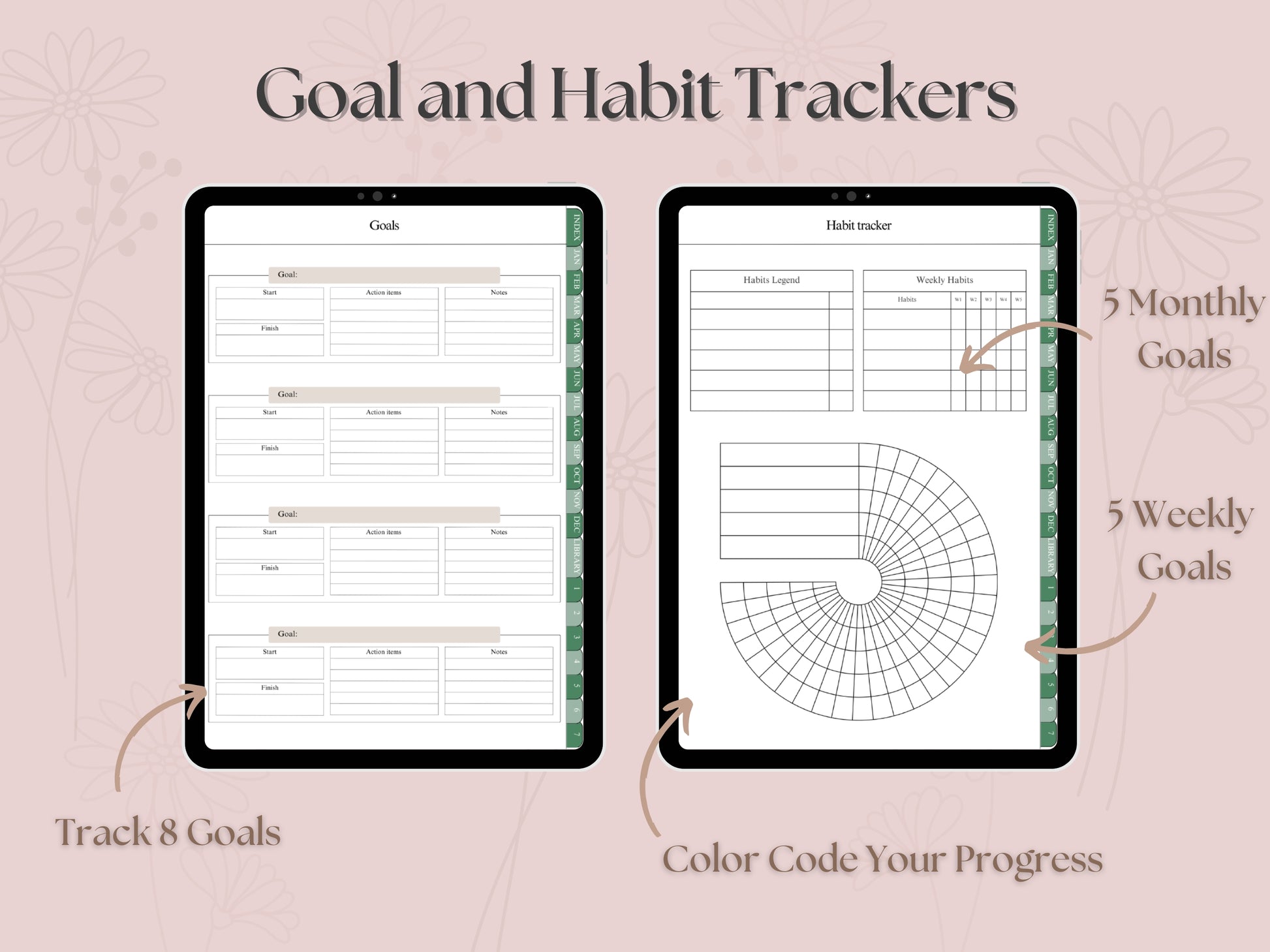 - Designed for tablets and digital planning apps like GoodNotes, Notability and other digital note taking apps